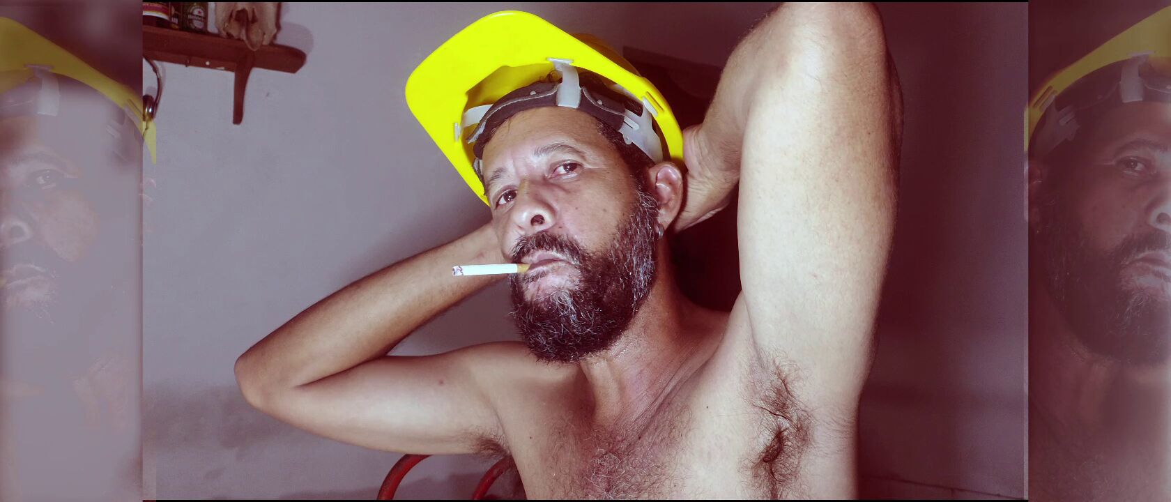 Zoom video to show my hairy body, my scrotum, my legs, my cock, my ass.